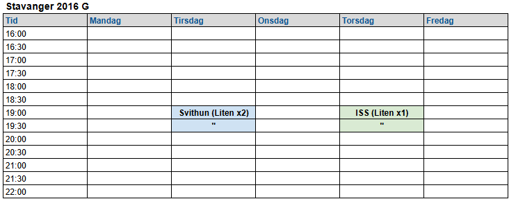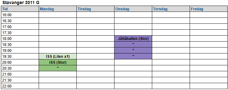 Laget har treningstid Torsdag 19:00 – 20:00 på ISS og Tirsdag 19:00 – 20:00 på Svithun.