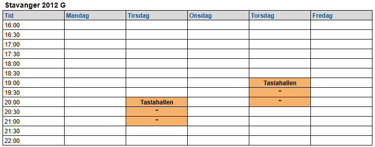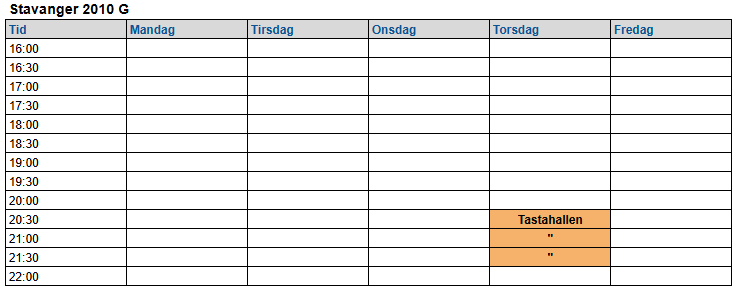 Laget har treningstid Torsdager 20:30 – 22:00 i Tastahallen.