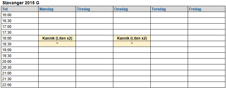 Laget har treningstid Mandager og Onsdag 18:00 – 19:00 på Kannik Skole.