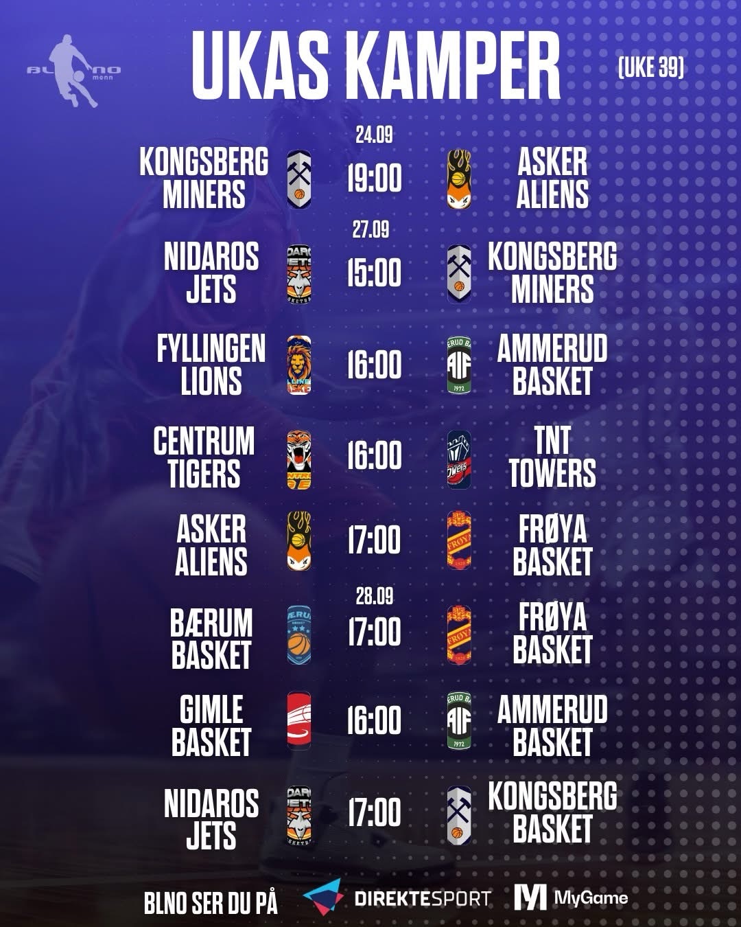 Du kan følge BLNO på Facebook og Instagram – de beste kildene til å holde deg oppdatert med resultater, stats, kampreferater og spektakulære øyeblikk fra ligaens lag!